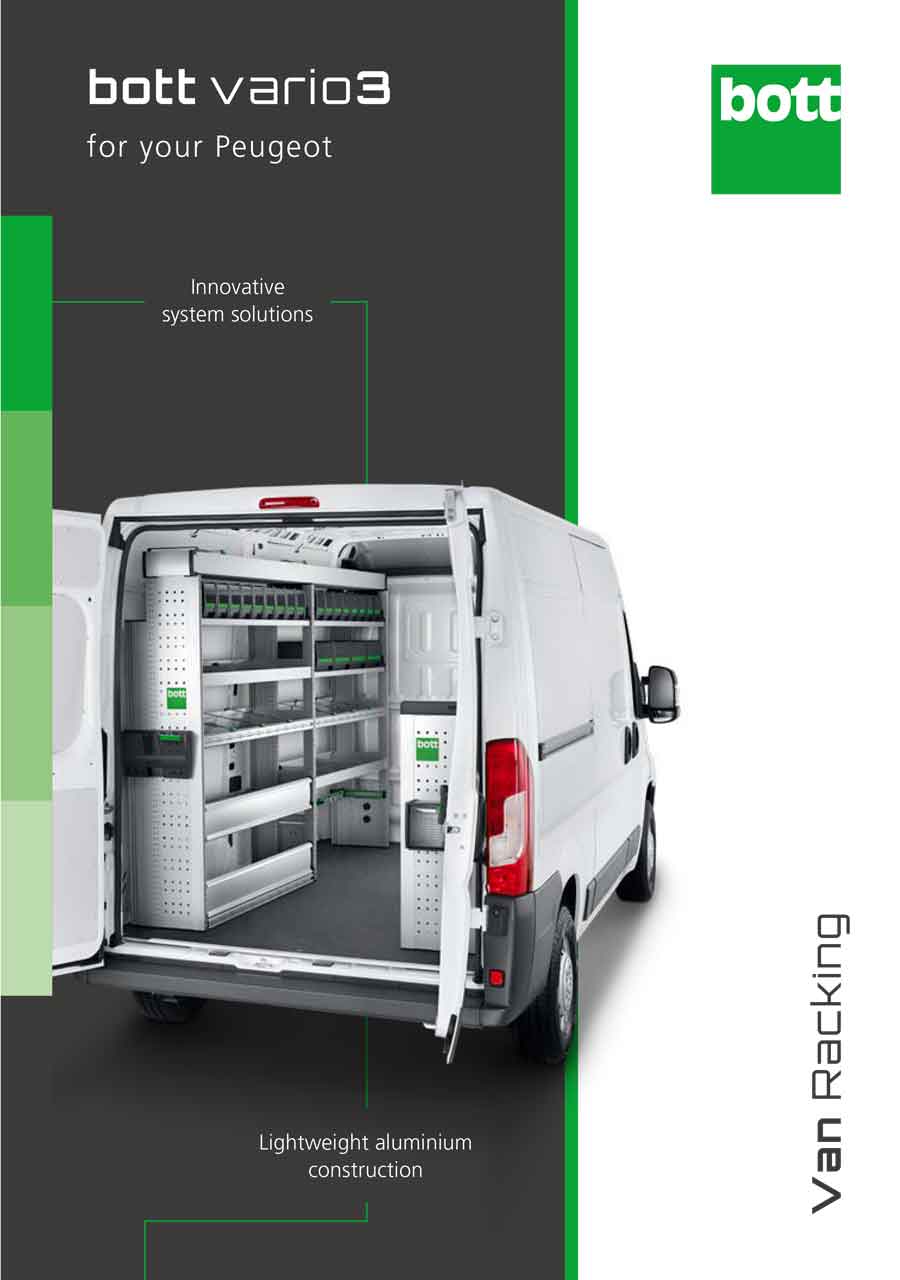 You'll work faster, more productively and more hassle-free with bott vario3. The reason for this: All of the components of our Peugeot van racking have been designed in such a way that your materials are always to hand in an instant and stored in a well-organised way. This means that you don't have to waste time looking for things, which can be very annoying, and allows you to work more productively. Whether a Peugeot Boxer, Expert or Partner – bott vario3 is designed to perfectly fit any Peugeot model and makes optimum use of the available storage space. All aspects have been considered: additional worktops, clever storage systems and maximum safety, thanks to intelligently positioned fixing points for lashing straps on the shelves and top trays.