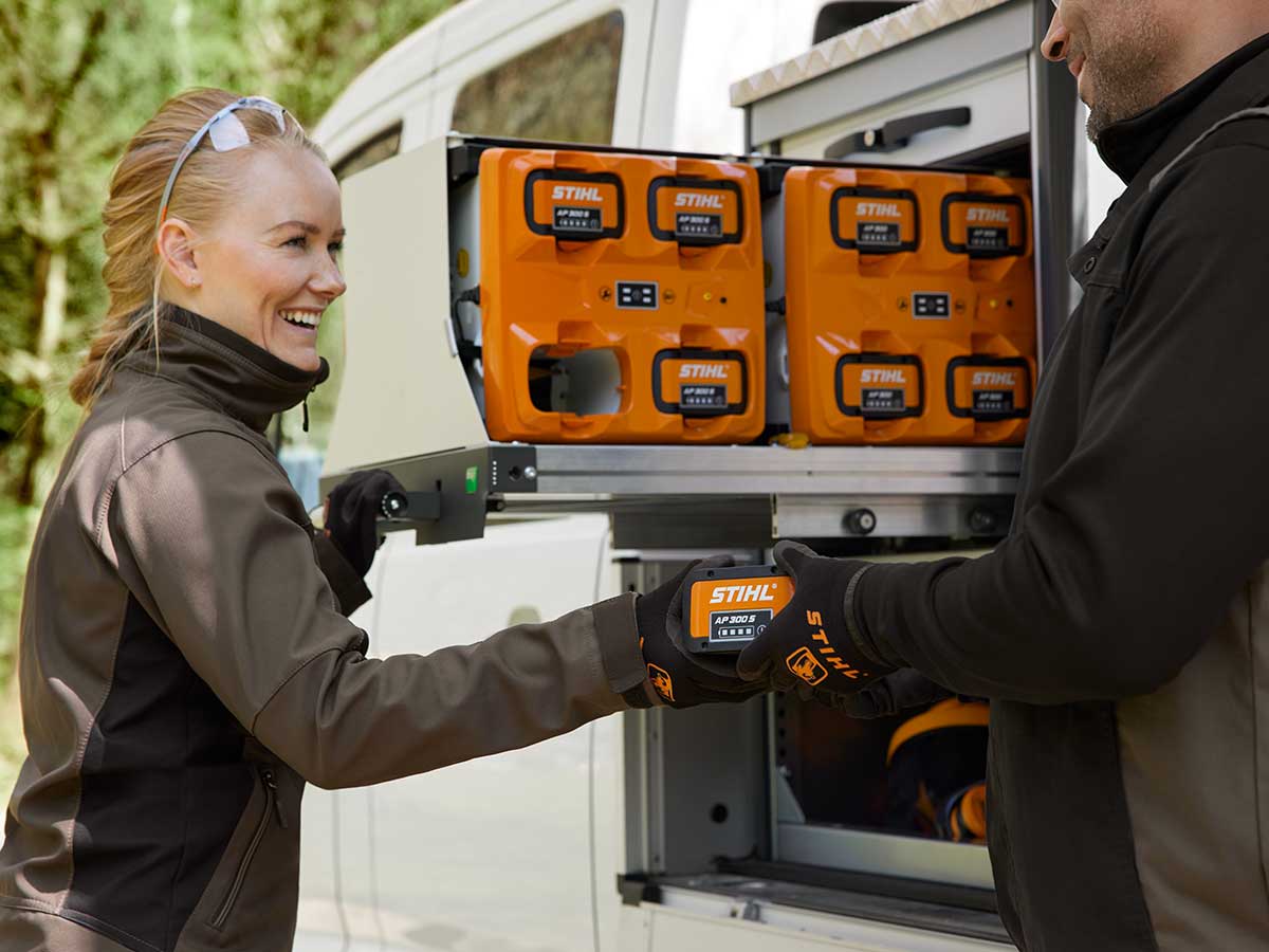 The bottTainer is a proven transport box and especially suitable for use on flatbed trucks and pick-ups. Together with our cooperation partner STIHL AG & Co. KG, we have specially adapted the bottTainer to their new battery charging management system and can offer you a complete solution. Thanks to innovative charging and energy management, you can be sure that all of the batteries are always fully charged and the tools are ready for use, wherever you are: mobile or stationary.