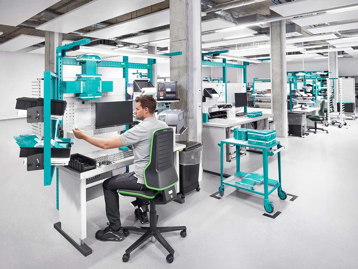 Bei der Gestaltung der Arbeitsplätze steht für uns vor allem die Funktionalität im Vordergrund. Dies ist unsere erste Betriebseinrichtung von bott. Meine Produktionsmitarbeiter fanden die avero Tische am besten. Also fiel die Entscheidung leicht.
